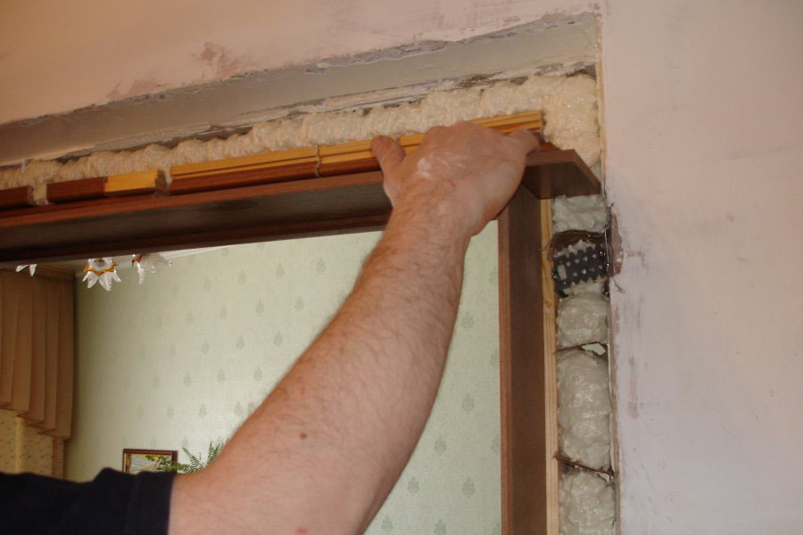 Если стены имеют толщину более пяти сантиметров (например, вам досталось вторичное жилье, немного переделанное прежними хозяевами), возможна установка только с использованием пены. Площадь контакта ее со стеной будет достаточной для фиксации. Если это покажется вам ненадежным, можно закрепить все части коробки на шурупы или другие подходящие элементы. Когда пена высохнет, ее излишки срежьте острым ножом.