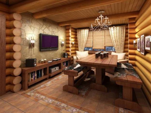 Для тех кто захочет использовать в оформлении русской бани современные отделочные материалы, такие как керамическая плитка или хромированные смесители, следует помнить, что все элементы обязательно должны гармонировать с общей линией дизайна. Помните, что крайне важно подобрать наилучшее сочетание простоты и современных элементов дизайна, чтобы привнести в интерьер небрежные нотки безвкусицы.