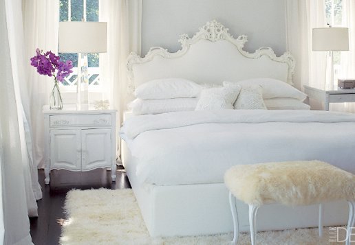 Самый простой способ сделать белоснежную спальню уютной — это дополнить ее теплыми оттенками, такими как коричневый, бежевый, светло-коричневый и земляной. Но не забывайте о текстуре. Высокий искусственный мех особенно приветлив, а белый ворсистый ковер — плюшевая площадка для ног. Свет также важен в белой спальне. Прозрачные шторы добавляют воздушности, а свет старинных ламп поглощается белыми стенами и мебелью, а не отражается традиционными или люминесцентными лампочками.