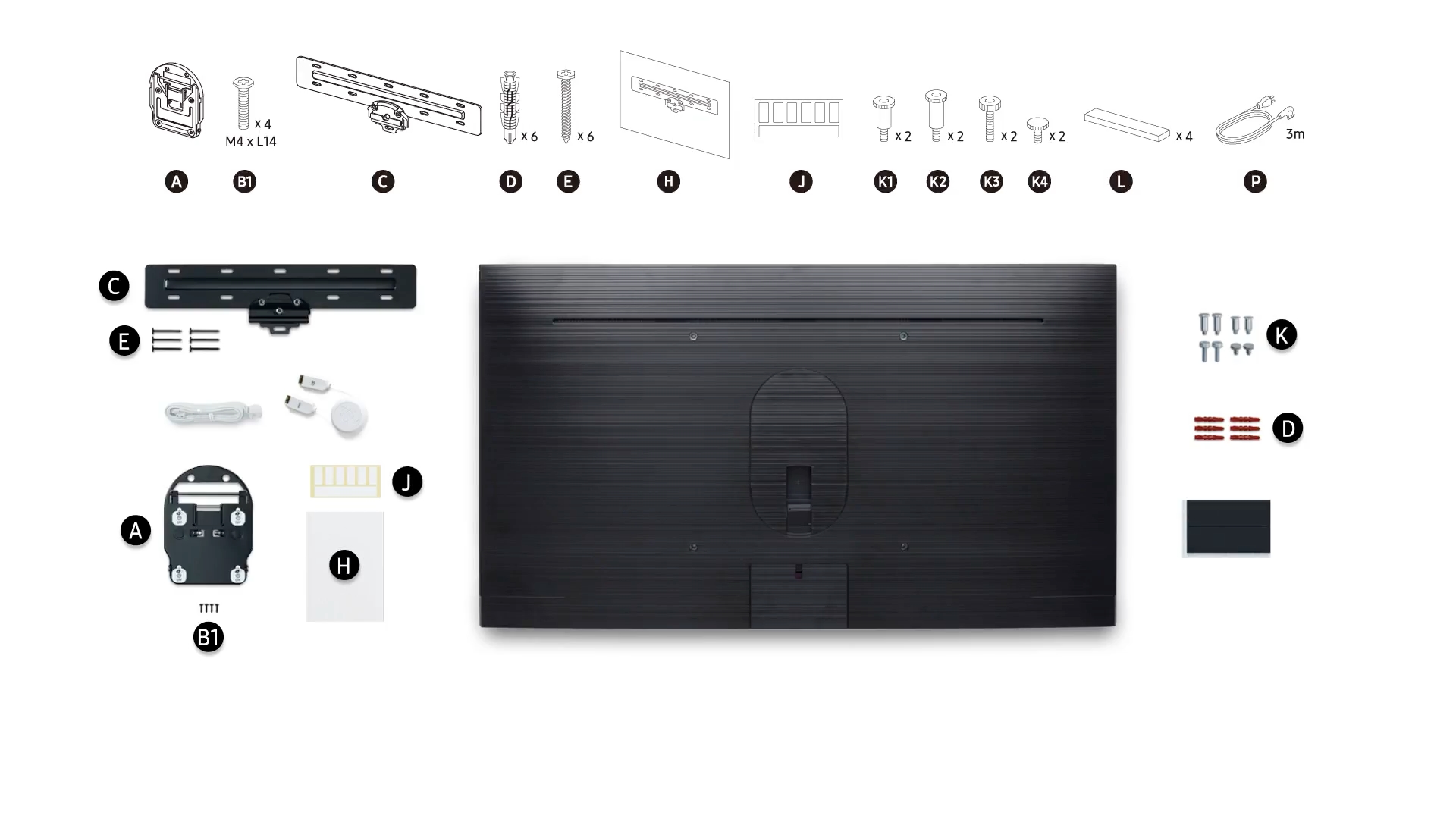 Как ни странно, винты НЕ включены. Samsung указывает, что винты должны быть M8 и длиной 43–45 мм.