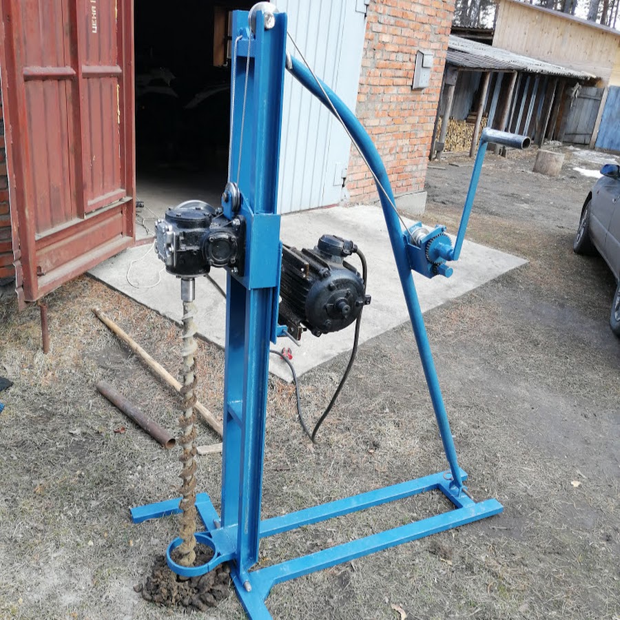 Для облегчения процесса бурения используется самодельная тренога — конструкция, с помощью которой вынимать из скважины бур намного проще и легче
