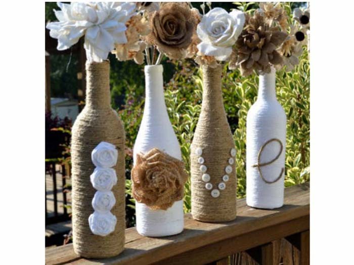 - 10 50 интересных фото идей декора бутылок шпагатом: