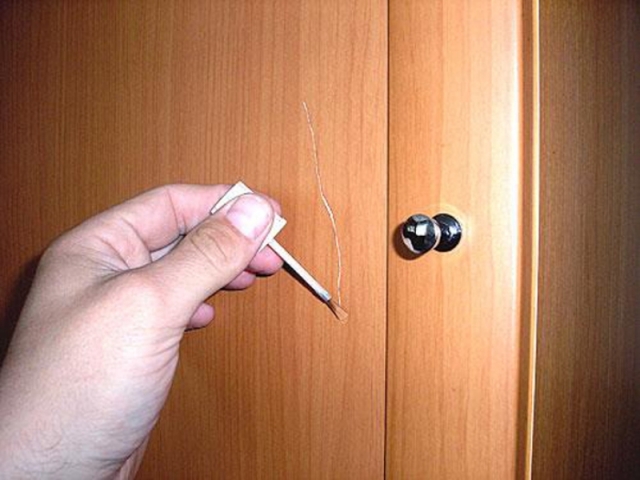 Как заделать скол на двери межкомнатной