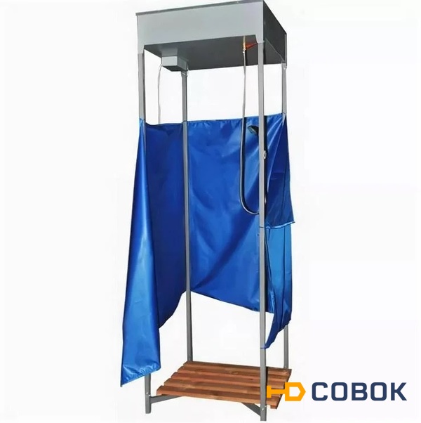 Составляющие элементы кабины представляют собой профильную трубу размером 30х30 мм. Процесс естественного вохдухообмена обеспечивается за счет обтяжки основы душевой кабины водонепроницаемым материалом.