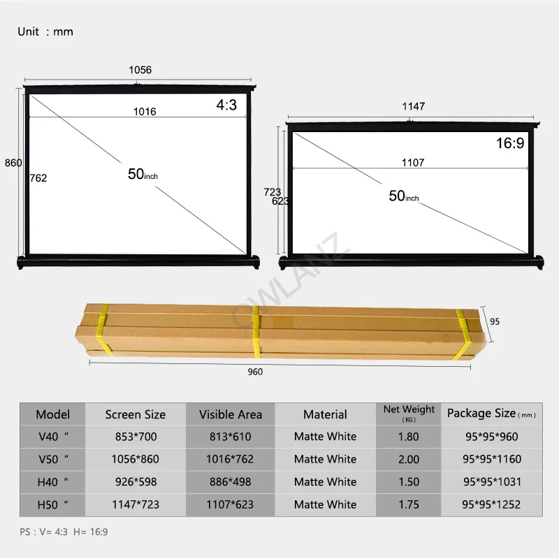 | Диагональ LED | Высота LED | Ширина LED | |||