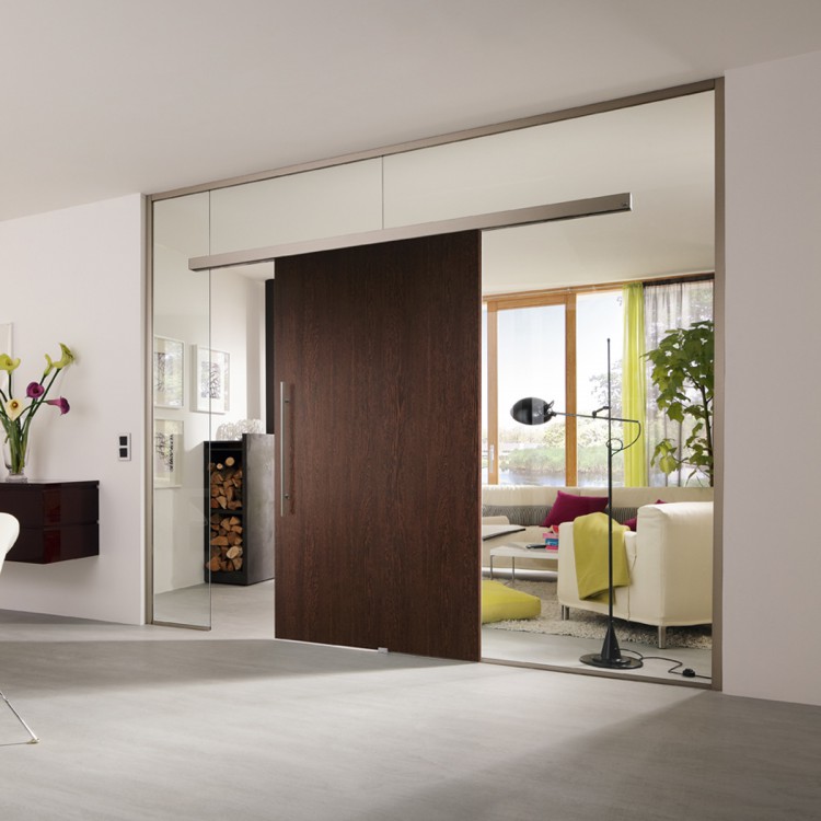 Самый привычный вид, который имеет классический механизм и дверные полотна, двигающиеся вдоль стены по направляющим.