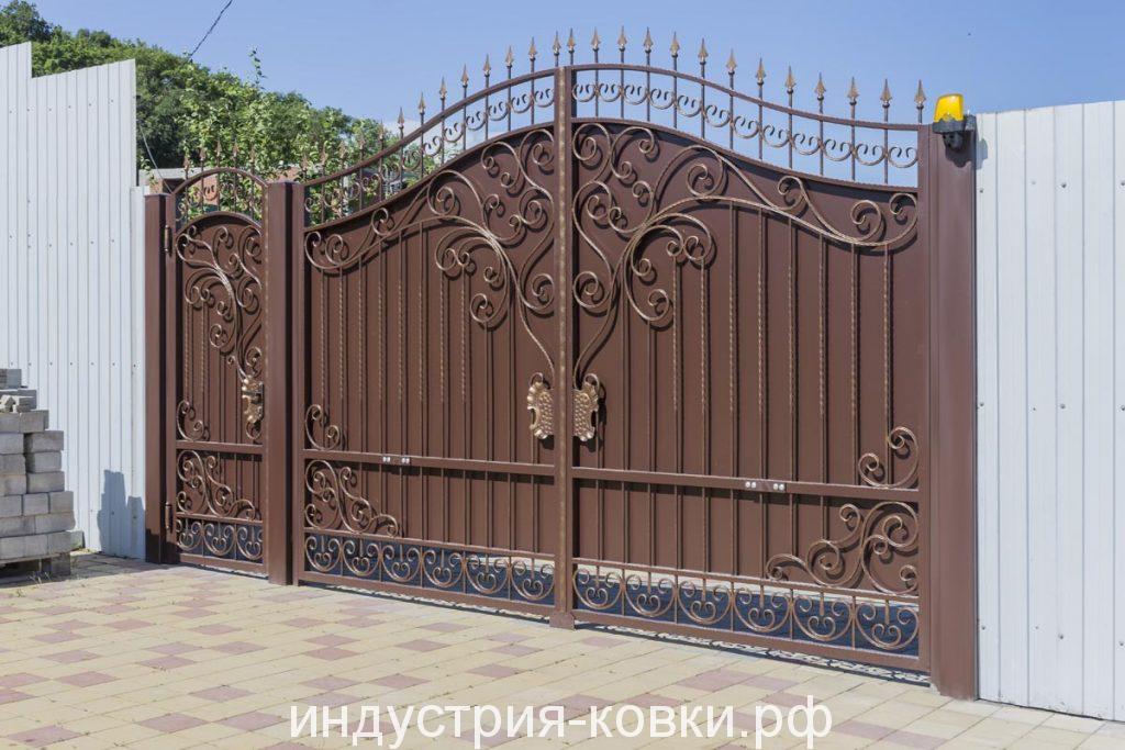- Цену. Распашные металлические ворота с калиткой — недорогое решение. Это касается и приобретения, и монтажа и обслуживания.