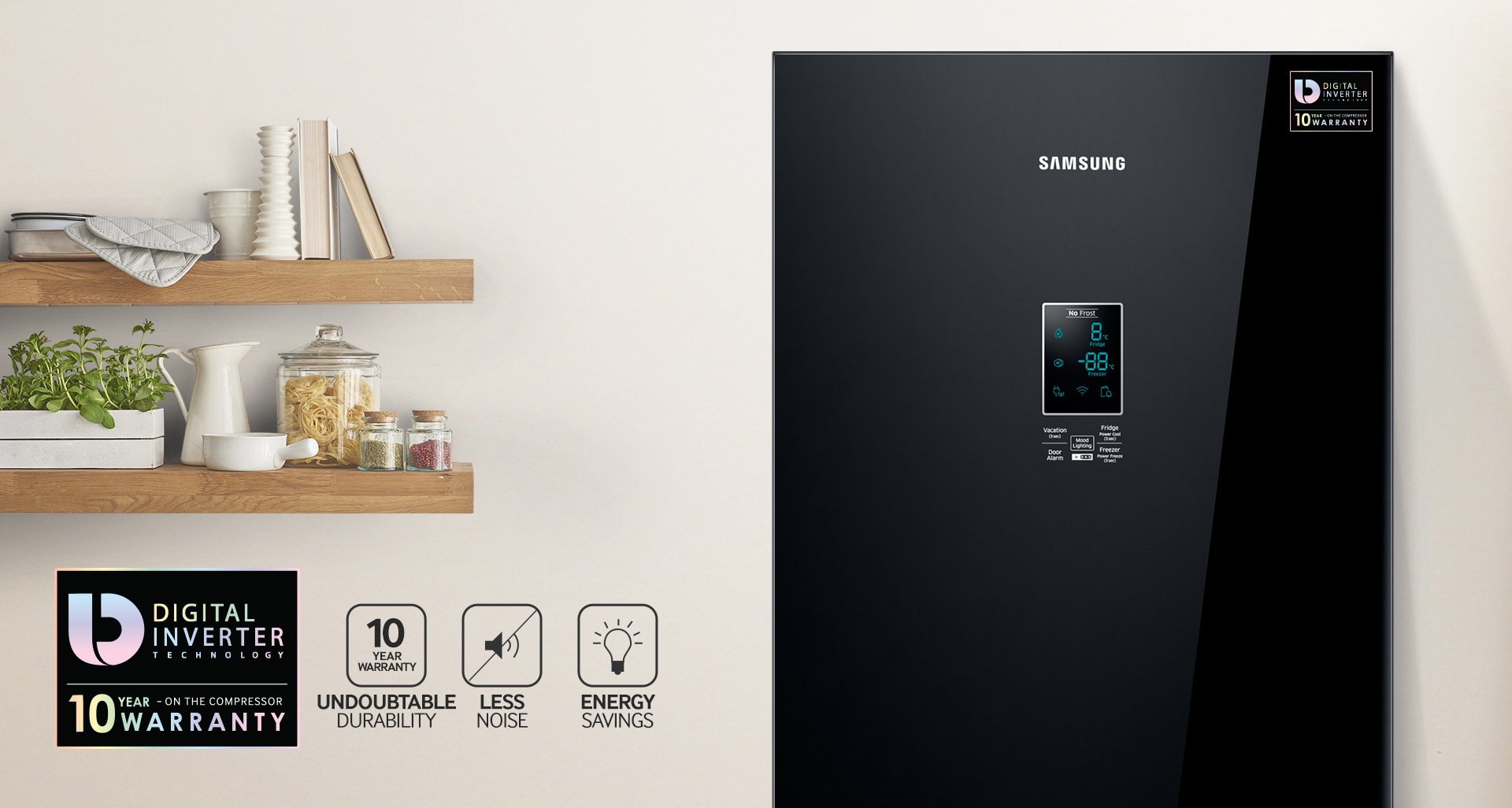 Часто бывает, что вы уже давно в постели и почти уснули, как вдруг холодильник начинает гудеть. Цифровой инверторный компрессор может полностью выключаться ночью или работать в бесшумном режиме с пониженной скоростью до самого утра, или даже весь день, если вы не открываете дверцу в течение дня и не запускаете в камеру теплый воздух.