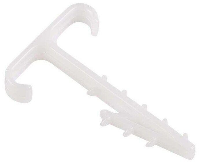 Эти метизы имеют капроновый дюбель с противоходами, на конце которого имеется петля. На петле закрепляется хомут, и осуществляется крепёж изделия. Петля расширяет возможности для монтажа гофры и проводов разнообразного диаметра.