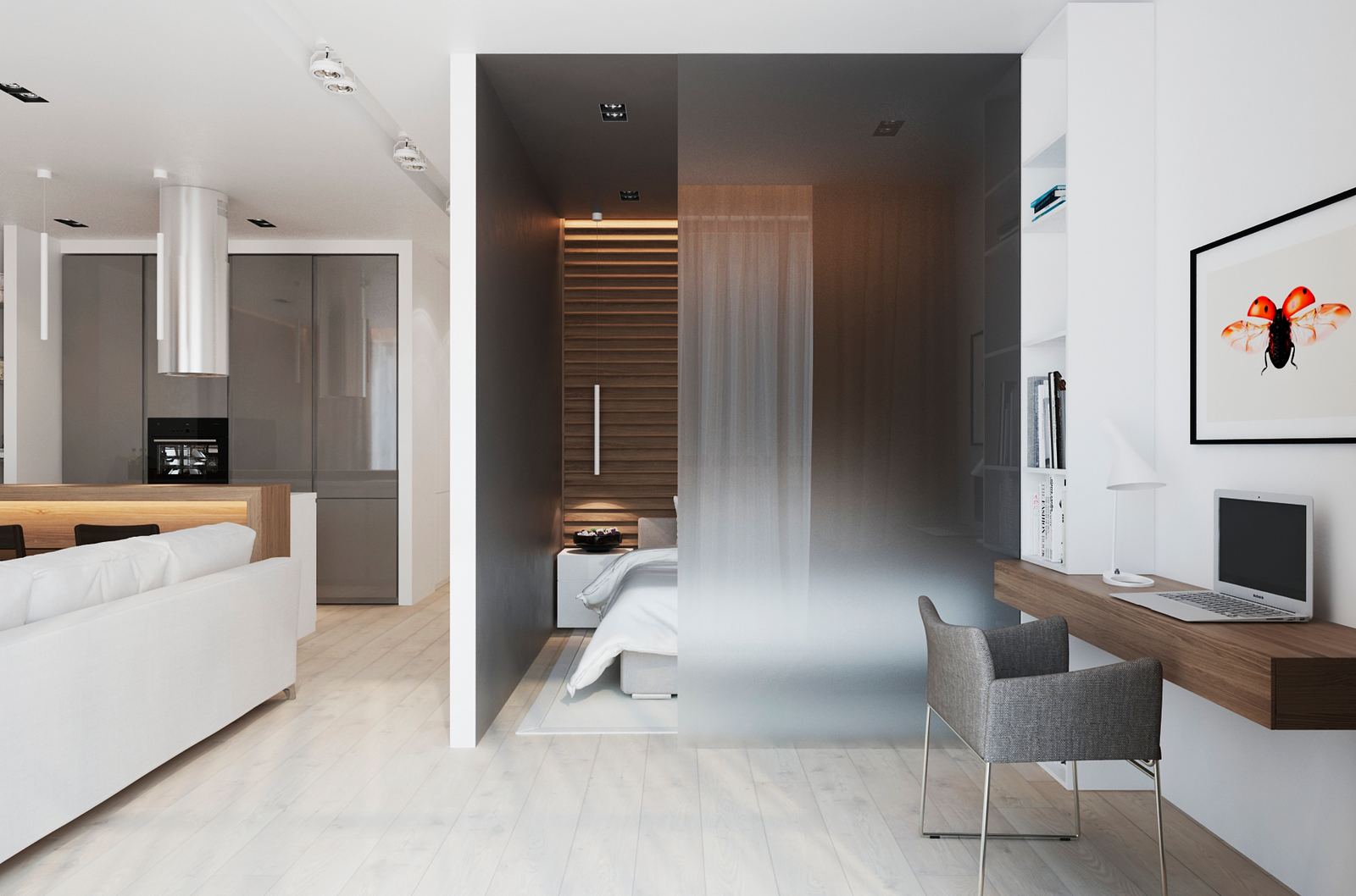 ▪ Раздвижные перегородки для зонирования квартиры 42 м