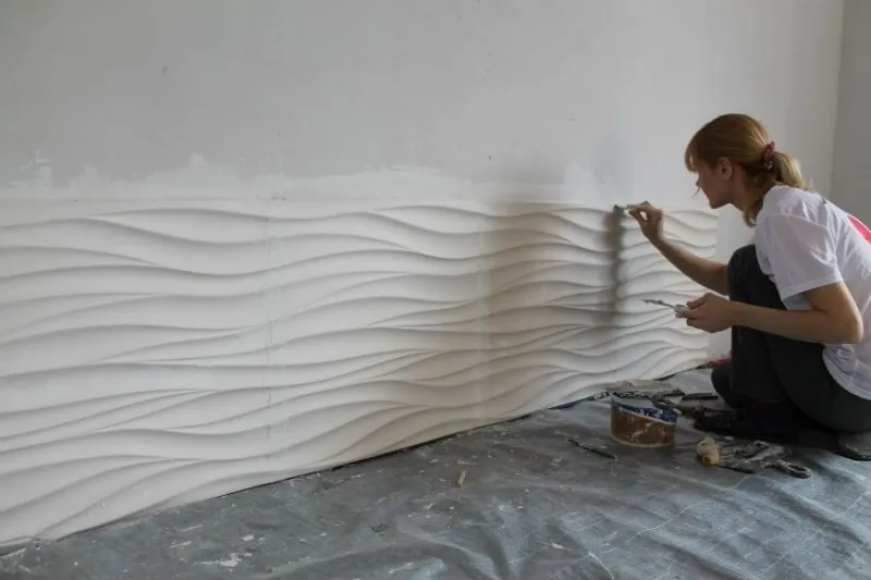 Модульные панели не ограничиваются плоскими поверхностями. В традициях гипсовых строительных деталей, лепнины и произведений искусства также могут быть изготовлены скульптурные и объемные панно. Гипсовая штукатурка может быть использована в форме для получения быстросхватывающихся деталей, которые могут иметь потрясающие трехмерные текстуры поверхности и эффекты. Скульптурные сборные панели часто создаются путем сочетания компьютерного проектирования с традиционной ручной лепкой для создания точных конструкций, которые по-прежнему сохраняют сущность ручной работы. Варианты дизайна варьируются от естественных плавных узоров до более абстрактных рисунков или даже корпоративных логотипов. После отверждения эти панели можно покрасить стандартной краской или улучшить с помощью полированной штукатурки или архитектурных покрытий. Этот тип формованного или литого гипса также можно использовать для создания изделий, которые выглядят и ощущаются как камень.