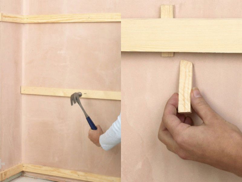 - На обрешетку из деревянных реек. Преимущество конструкции — сравнительно невысокая стоимость. Кроме того, дерево — экологичный материал, как и МДФ. Поэтому способ монтажа на обрешетку из реек выбирают для жилых комнат и загородных домов.