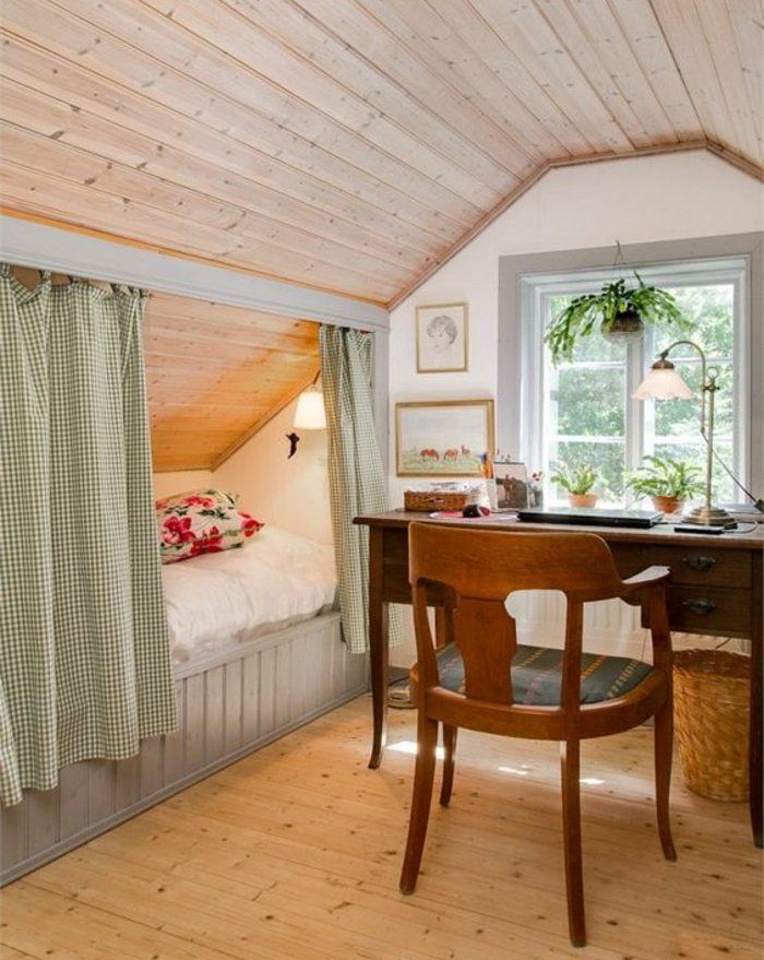 Сложными цветами, их оттенками, различной интенсивностью окраски можно подчеркнуть оригинальную деталь, например, наклонную плоскость мансардной крыши или выступающую конструкцию встроенного стеллажа.