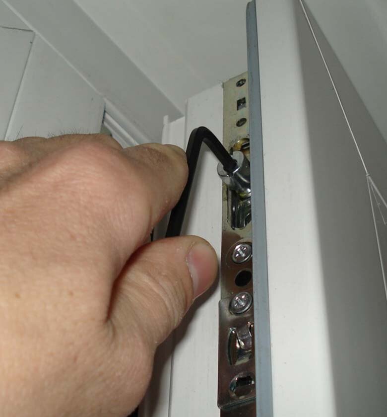 Такая проблема также не является редкостью. Перекос створки может произойти из-за нарушения регулировок окна, усадки здания. Вы вполне сможете вернуть конструкцию в нормальное положение. Вам понадобится приобрести ключ на 4, при помощи которого можно регулировать петли; начинать нужно с нижней. Откройте окно; в зависимости от направления перекоса створку потребуется поднять или опустить. Для этого надо убрать накладку и воспользоваться ключом-шестигранником; у петли есть специальный паз. Поворот инструмента по часовой поднимет конструкцию вверх, а в обратном направлении – опустит.