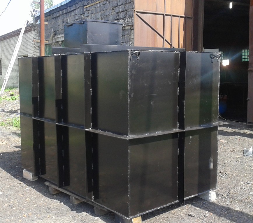 - В виде стальных, сваренных из листового металла емкостей в форме куба или параллелепипеда;