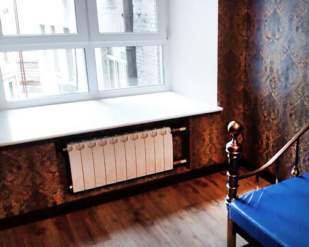 Для нормального микроклимата в жилом помещении радиатор отопления не должен перекрывать 70-75% ширины оконного проема. Тогда холодный воздух от окна и теплый воздух от батареи свободно смешиваются и перемещаются по комнате, без запотевания стекол. Поэтому, вместо 5-6 мощных секций, лучше поставить 8-10 секций с меньшей мощностью, но занимающих требуемую площадь под окном.