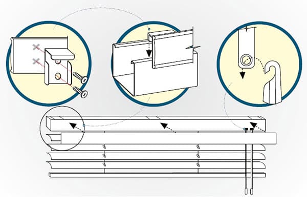 - Теперь потребуется зафиксировать направляющие. Не зависимо от того к какому типу относится штора, все монтируются с наружной или внутренней стороны штапика;
