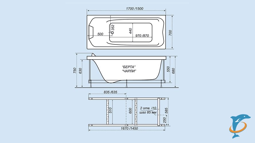 - Еще одним важным параметром является экономия. Заполнить ванну размерами 170*70 см гораздо затратнее, нежели чашу 150*70 см. Учитывайте это при покупке.