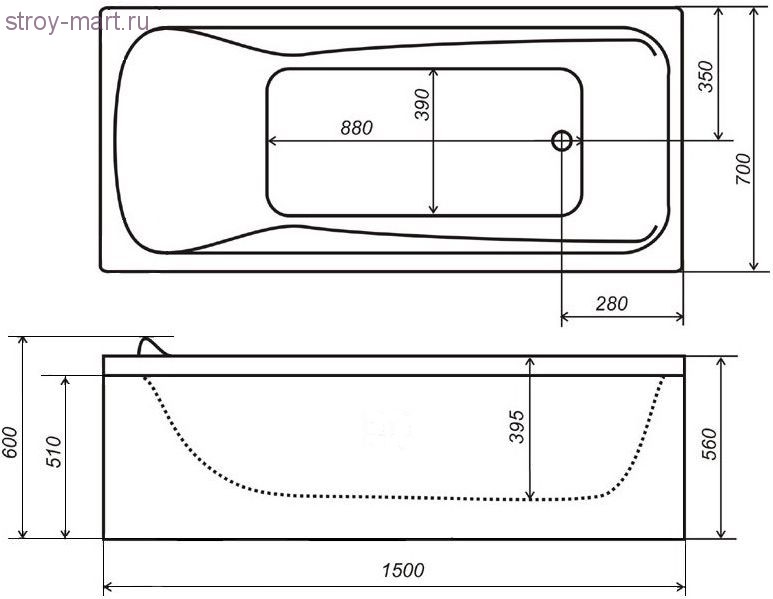 Длина (мм) Ширина (мм) Высота (мм) Емкость (литры) 1500 мм 1020 мм 560 мм 160 л Размеры отдельностоящей ванны