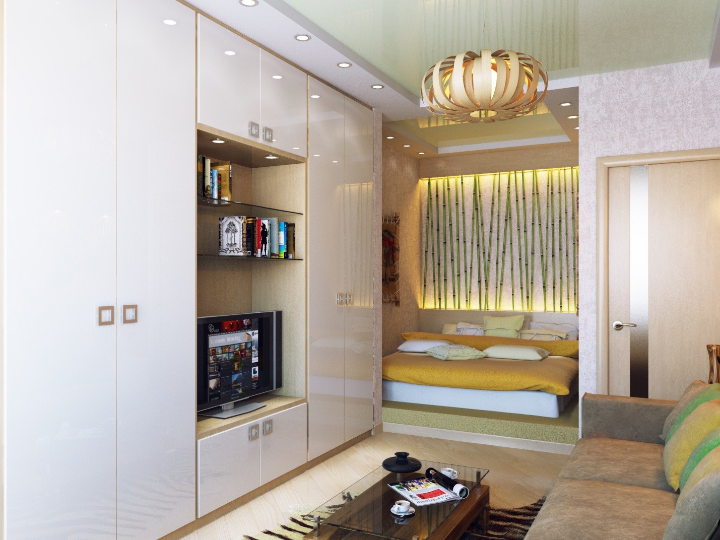 Раздвижные перегородки для разделения гостиной и спальни