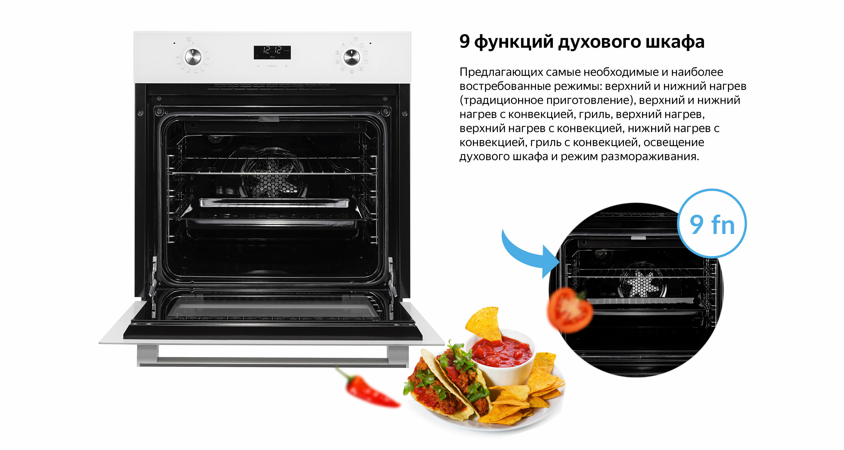 В закрытом пространстве духового шкафа обдув создает настоящий вихрь из горячего воздуха. Этот вихрь равномерно прогревает продукт со всех сторон.