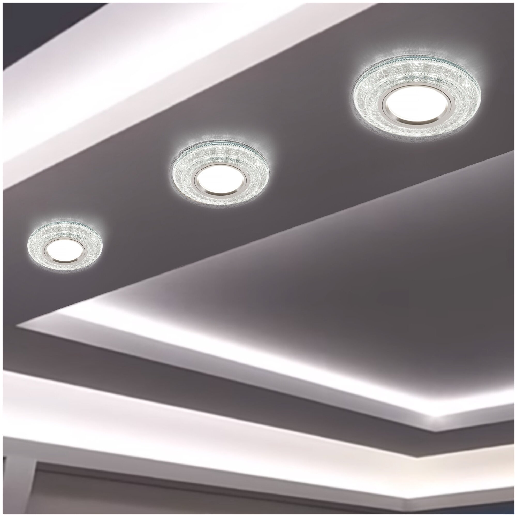 Функцию багета может выполнять рамка для точечного светильника. Основание должно иметь достаточную длину чтобы вся конструкция не казалась слишком утопленной. Желательно, чтобы высота регулировалась.