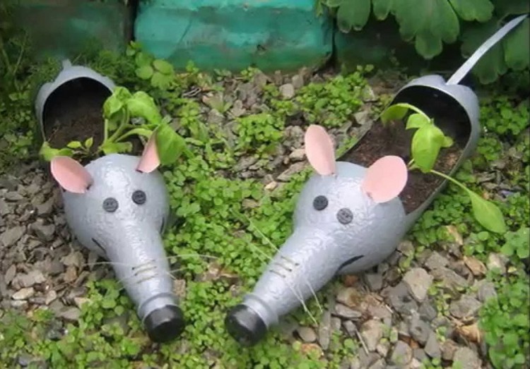 Можно также сделать фигурки в виде зверьков. Некоторые мастерицы создают красивые кашпо для цветов из пластиковых бутылок.