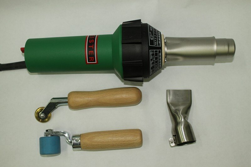 Ручной инструмент используется в тех случаях, когда требуется сварить небольшой или криволинейный участок тента, либо произвести ремонт мембраны в месте повреждения. После нагрева свариваемых элементов, они прокатываются специальным валиком, материал которого исключает возможность прилипания к нему расплавленного пвх покрытия.
