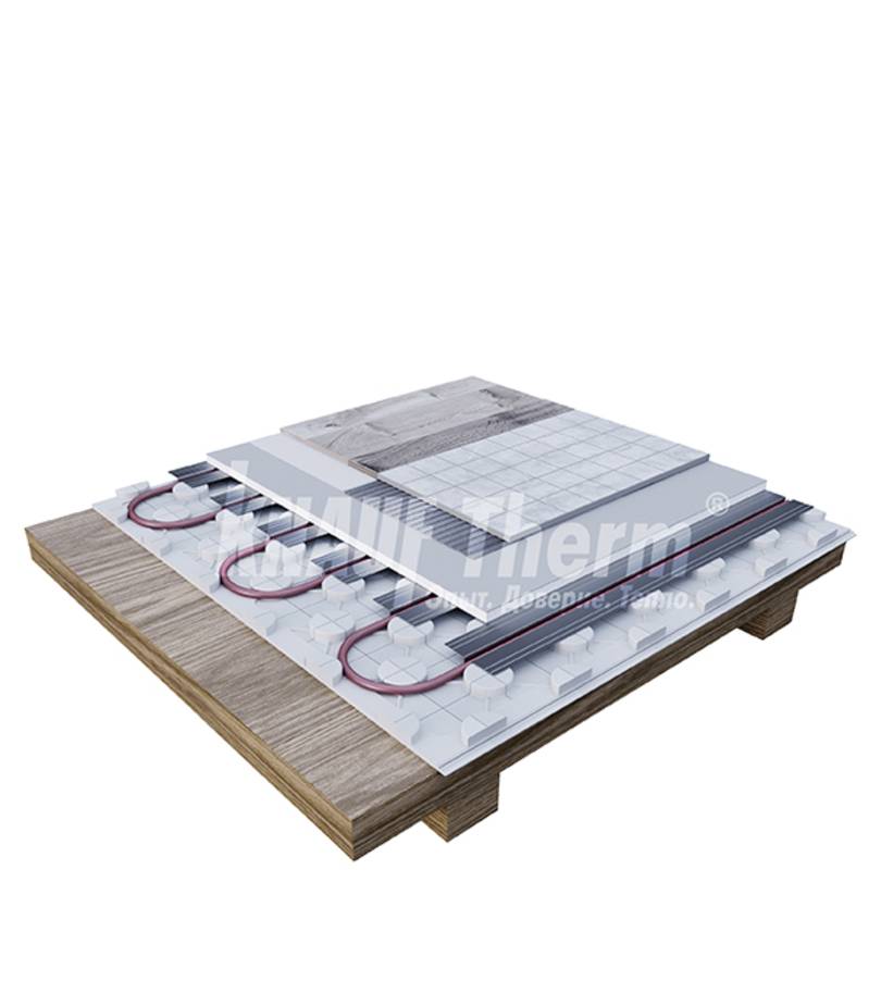 Это модульная изоляционная плита, пароизоляция и удерживающая решетка излучающей трубы в одном продукте, который укладывается прямо поверх гравия или чернового пола. Встроенный лист полистирола обеспечивает пароизоляцию без необходимости прикреплять скотчем или скобами отдельный пароизоляционный материал. Заменяя собой отдельные изделия из лучистого пенопласта, пароизоляции, линейно-удерживающей сетки, стяжек и скоб, эти панели значительно упрощают монтаж бетонных лучистых полов