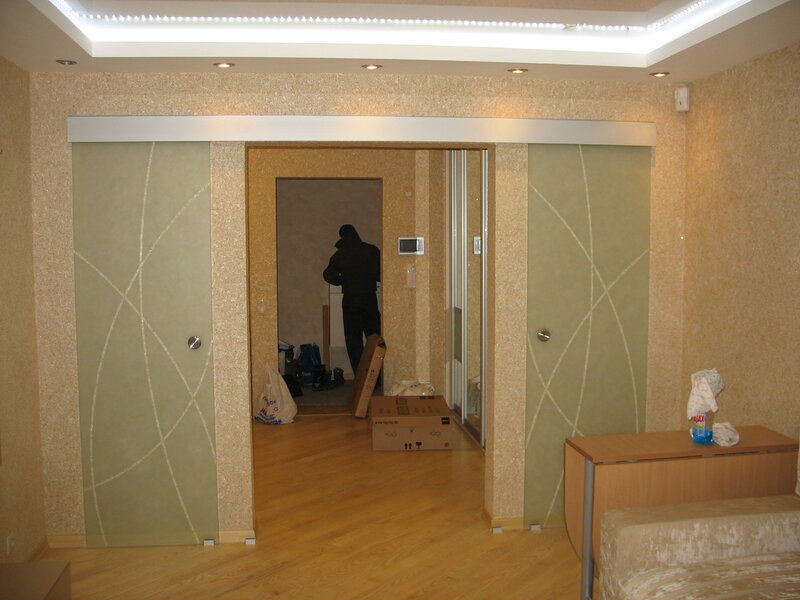 При этом ее поверхность предварительно размечается, как и сами двери. Очень важно делать ее с максимальной точностью, поскольку от этого процесса в наибольшей мере будет зависеть функциональность дверей; - Дверное полотно навешивается на петли и перегородка приобретает законченный вид.
