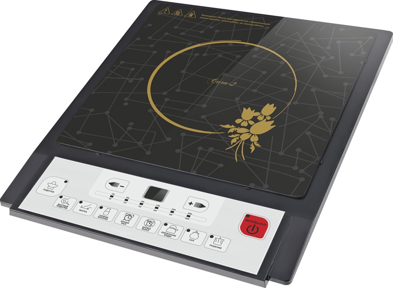 Поверхность индукционной плиты нагревается от горячей поверхности кастрюли. Плита электрическая индукционная работает только с посудой, имеющей ферромагнитное дно.