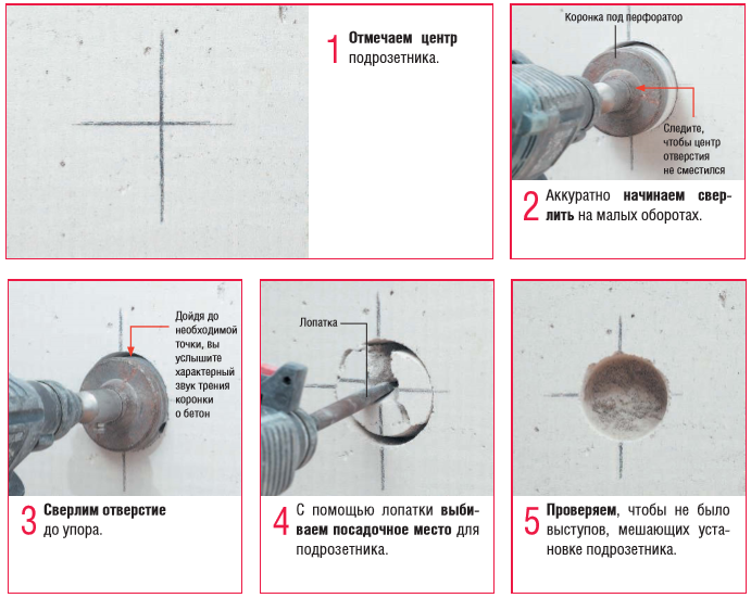 ΠΠΏΡΠ΅Π΄Π΅Π»Π΅Π½Π½ΡΡ ΡΠ»ΠΎΠΆΠ½ΠΎΡΡΡ ΠΏΡΠ΅Π΄ΡΡΠ°Π²Π»ΡΠ΅Ρ ΡΠ°ΡΡΠ΅Ρ ΠΌΠ΅ΡΡΠ° ΡΠ°ΡΠΏΠΎΠ»ΠΎΠΆΠ΅Π½ΠΈΡ ΠΎΡΠ²Π΅ΡΡΡΠΈΡ ΠΏΠΎΠ΄ ΠΌΠΎΠ½ΡΠ°ΠΆΠ½ΡΡ ΠΊΠΎΡΠΎΠ±ΠΊΡ. ΠΠ³ΠΎ Π½Π΅ΠΎΠ±Ρ ΠΎΠ΄ΠΈΠΌΠΎ ΡΠ°Π·ΠΌΠ΅ΡΠΈΡΡ ΠΈ Π²ΡΡΠ΅Π·Π°ΡΡ Π½Π΅ΠΏΠΎΡΡΠ΅Π΄ΡΡΠ²Π΅Π½Π½ΠΎ Π² ΠΏΠ»ΠΈΡΠΊΠ΅ ΠΈ Π½Π΅ΡΠΎΠΎΡΠ²Π΅ΡΡΡΠ²ΠΈΠ΅ Π² 3-4 ΠΌΠΌ ΡΠΆΠ΅ Π±ΡΠ΄Π΅Ρ ΠΊΡΠΈΡΠΈΡΠ΅ΡΠΊΠΈΠΌ ΠΈ Π½Π΅ ΠΏΠΎΠ·Π²ΠΎΠ»ΠΈΡ ΡΡΡΠ°Π½ΠΎΠ²ΠΈΡΡ ΠΏΠΎΠ΄ΡΠΎΠ·Π΅ΡΠ½ΠΈΠΊ Π½Π° ΡΠ²ΠΎΠ΅ ΠΌΠ΅ΡΡΠΎ. Π ΡΠ°ΠΊΠΈΡ ΡΠ»ΡΡΠ°ΡΡ ΠΏΡΠΎΡΠ΅Π·Π°Π΅ΡΡΡ Π½ΠΎΠ²Π°Ρ ΠΏΠ»ΠΈΡΠΊΠ° ΠΈΠ»ΠΈ Π²Π½ΠΎΠ²Ρ ΡΠ²Π΅ΡΠ»ΠΈΡΡΡ ΠΎΡΠ²Π΅ΡΡΡΠΈΠ΅ Π² ΡΠ°ΠΌΠΎΠΉ ΡΡΠ΅Π½Π΅. ΠΡΠΆΠ½ΠΎ ΡΡΠΈΡΡΠ²Π°ΡΡ ΠΈ ΡΠ°ΡΡΡΠΎΡΠ½ΠΈΠ΅ ΠΌΠ΅ΠΆΠ΄Ρ ΡΠ΅Π½ΡΡΠ°ΠΌΠΈ ΠΏΠΎΠ΄ΡΠΎΠ·Π΅ΡΠ½ΠΈΠΊΠΎΠ².