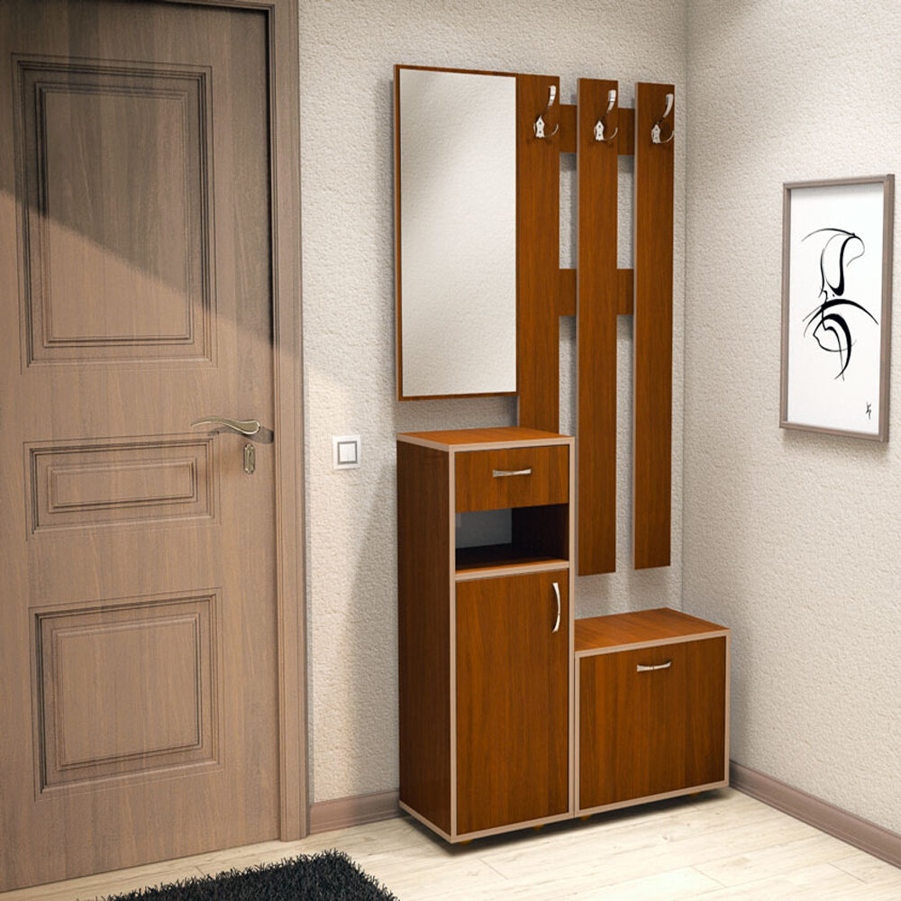 Такая расстановка является более функциональной и позволяет разместить все необходимые элементы в маленькой прихожей, при этом не занимая много места.