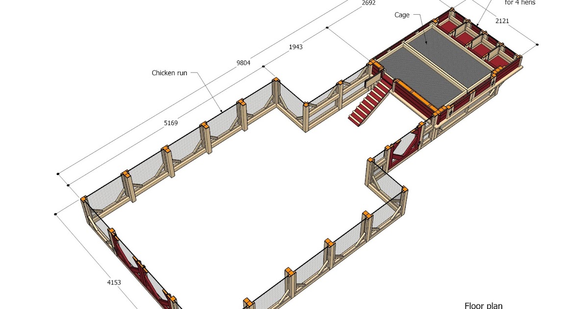 При рисовании чертежей, не забудьте оставить место для открытого выгула. При размерах курятника 2×2, такой вольер для выгула должен быть не меньше 12 квадратов.