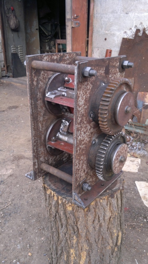 В домашних условиях выполнить такую работу невозможно, понадобится помощь токаря-фрезеровщика. Из рессоры или полосы вырезаются ножи и прикрепляются к маховику с углом наклона в 30 градусов. Затем изготавливается рама и загрузочный бункер. Собирается воедино конструкция из ножей, маховика, вала, подшипников, их обойм и рамы.