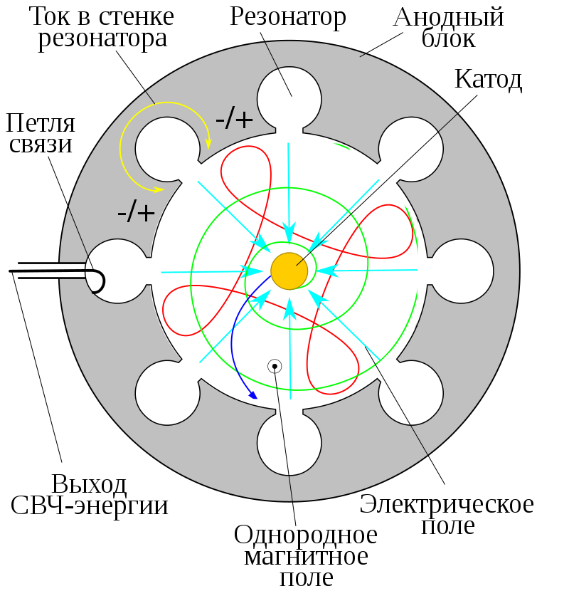 Может быть, я дал вам слишком много, чтобы думать обо всем сразу, давайте просто упростим. Магнит используется для вращения электронов по кругу, а полости предназначены для того, чтобы красть энергию из вращающегося облака и генерировать 2400000000 циклов радиоволн в секунду с мощностью, достаточной для приготовления вашего обеда.Обратите внимание, что магнит не подает немного энергии в систему (энергетическая компания и чековая книжка мамы заслуживают этого), магнит просто направляет электроны и обманом заставляет их преобразовывать их энергию во что-то, что мы можем использовать ( теплая и вкусная закуска, только в обед обязательно «прогоняй»!)