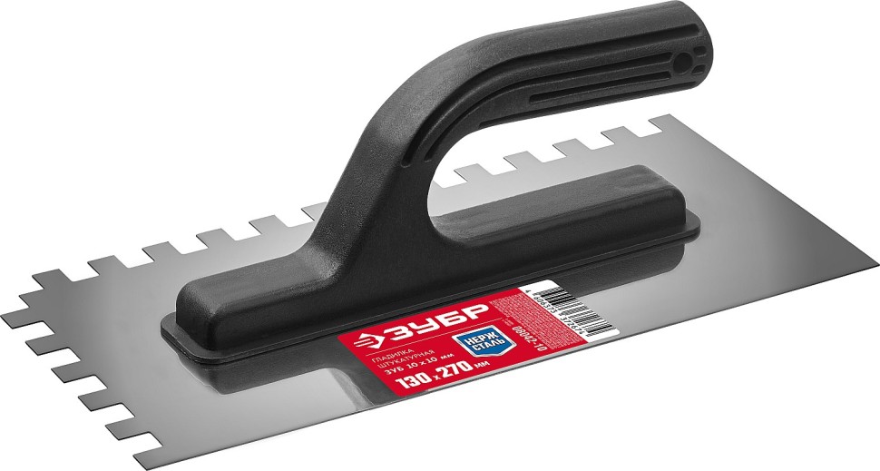 Эта разновидность шпателей не отличается особым разнообразием. Их можно классифицировать только по двум признакам: размеру зуба, с помощью которого задается толщина клея, а также форме. Если говорить о форме шпателя, то разница между ними заключается в ширине – если в первом варианте этот инструмент не превышает по ширине 200мм, то во втором варианте она может доходить до 600мм. Опять же, такое разделение связано с назначением – зубчатые шпатели используются для работы с настенным кафелем небольшого размера, а гребенка в виде сокола – для крупногабаритной напольной и настенной плитки.