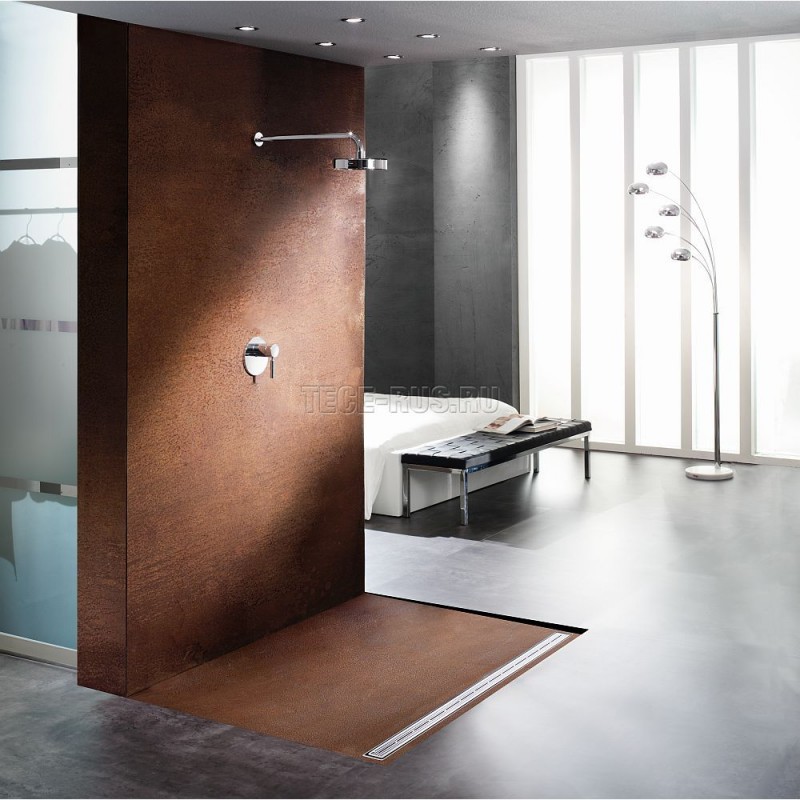 Это решение требует минимального уклона, и, таким образом, область под душем равномерно и легко поддерживает равновесие, а элементы дренажа покрыты нескользкими материалами.