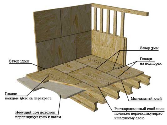 Как выполняется монтаж ОСБ на пол в каждом из описанных выше случаев?