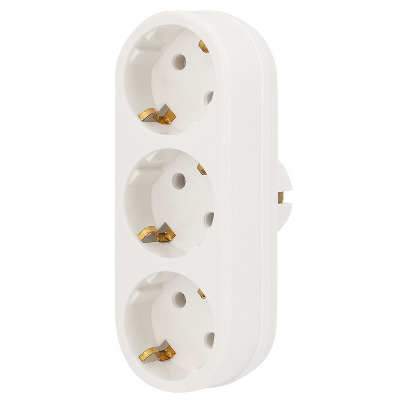 Тройник электрический VIKEY ТС.3-1з с одной заземляющей группой 250В 16А -100 Сетевые тройники электрическиеТройник VIKEY ТС.3-1з на 3 гнезда с одной заземляющей группой 10-16А служит для одновременного подключения нескольких электроприборов к одной сетевой розетке. Корпус изделия выполнен из негорючего пластика. Устройство оборудовано одной евророзеткой с заземляющим контактом и двумя универсальными розеточными гнездами, рассчитанными под российскую вилку с диаметром контактов 4 мм и евровилку с диаметром контактов 4,8 мм. Обратная сторона изделия оснащена штепсельной вилкой с заземляющим контактом.