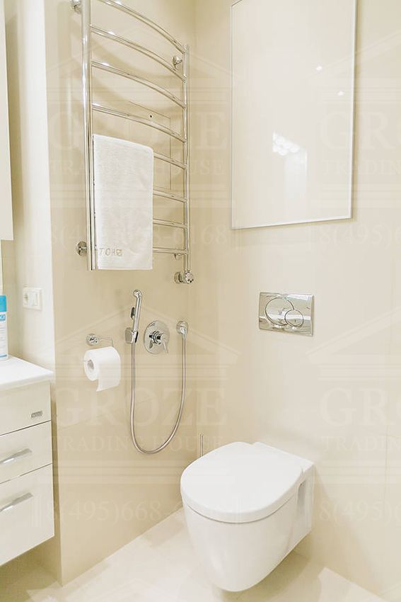 - Если в унитазе отсутствует встроенный душ, можно его установить самостоятельно на стене.