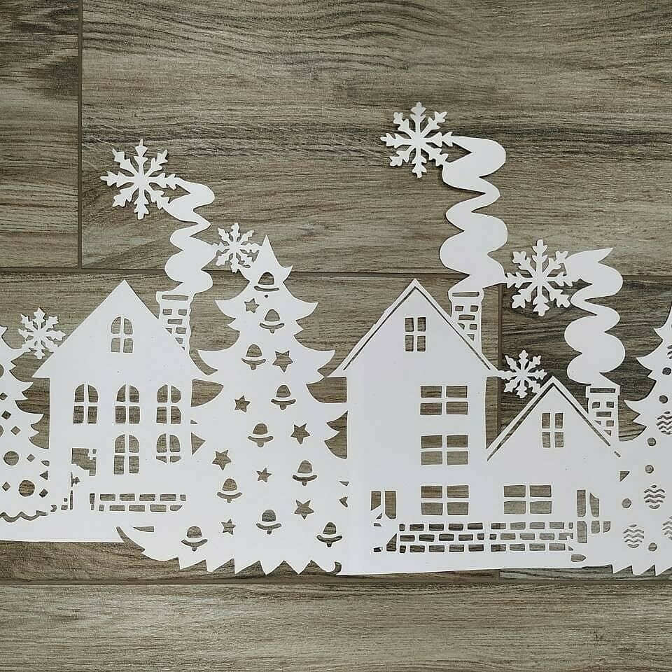 Новогодние украшения на окна из бумажных трафаретов Зимний лес