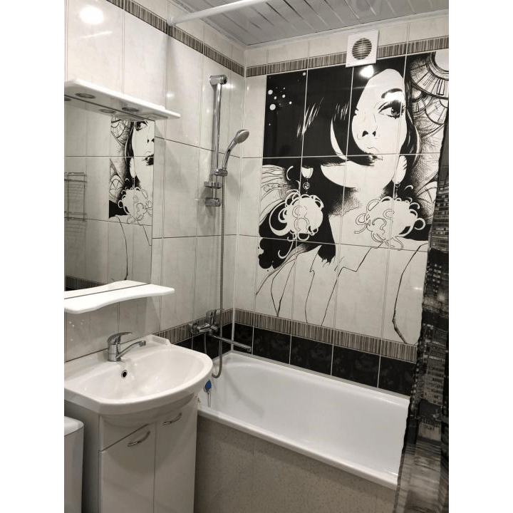 - На панели ПВХ возможно нанесение любого рисунка при помощи фотопечати и это может быть даже целая картина, расположенная над ванной или на открытом участке стены.