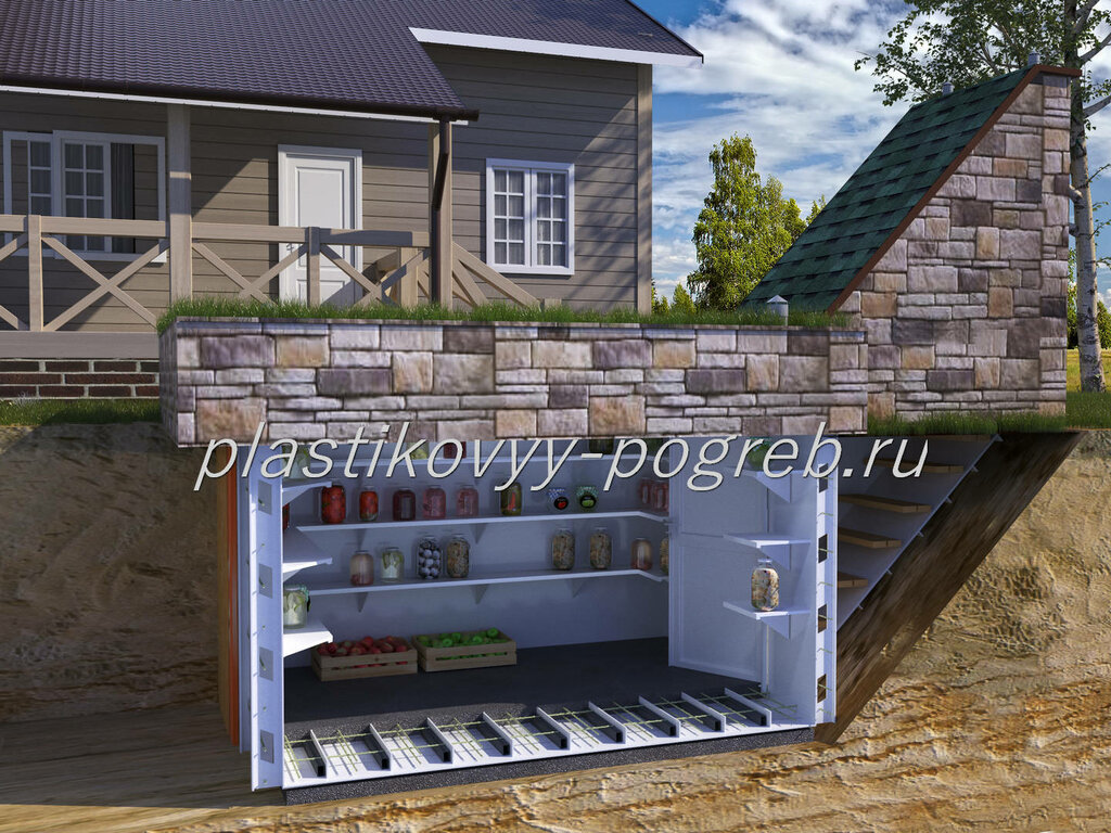 В этом плане полузаглубленный погреб выглядит более предпочтительно, потому что до уровня грунтовых вод его пол не достает, поэтому риски подтопления сведены практически к нулю.
