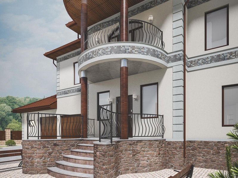 Входная группа в частный дом с колоннами
