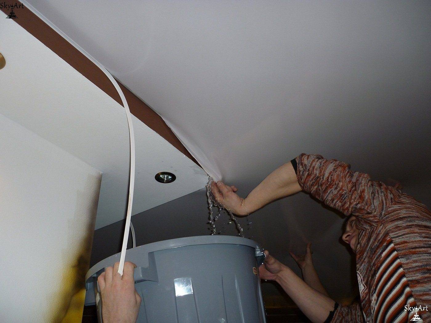 Как правильно убрать воду из натяжного потолка