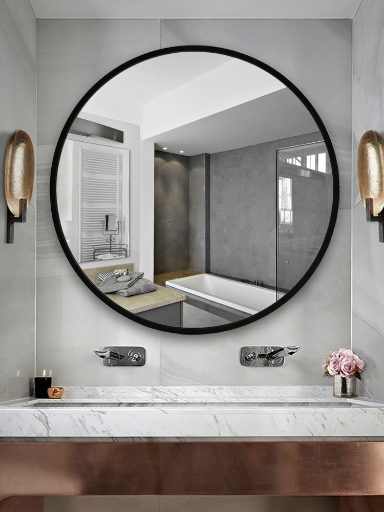 MullerDesignsCA производит декоративные зеркала для ванных комнат с большими рамами, соответствующие этой эстетике. Это зеркало в ванной может сочетаться с другими элементами комнаты, но не сочетаться с ним. Клиенты могут выбирать из различных размеров и цветов, чтобы получить именно то, что нужно для их ванной комнаты. Конструкция усилена для надежной фиксации, а фурнитура немецкого производства поддерживает вес зеркала.