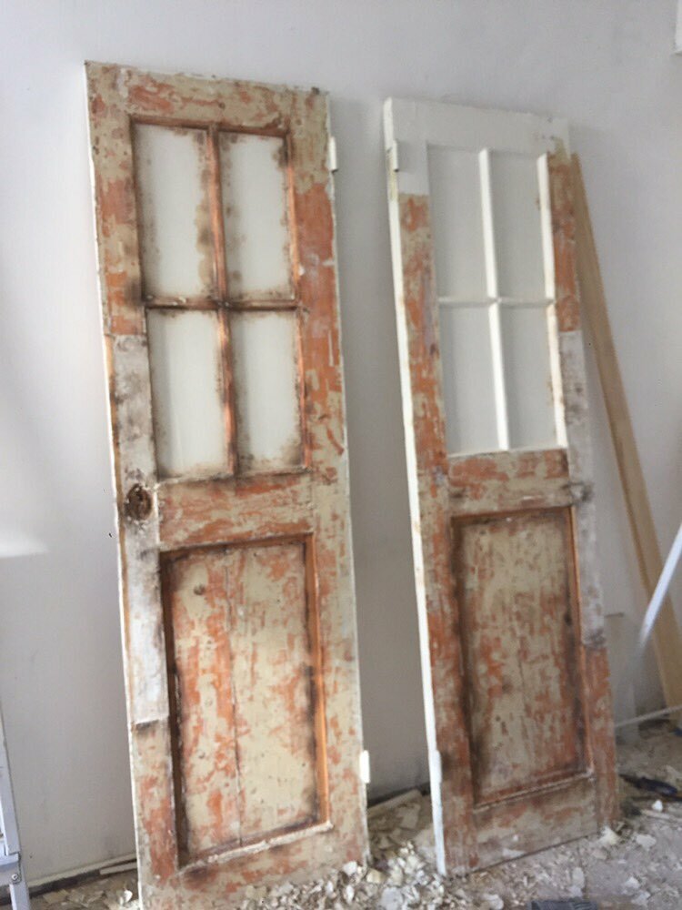 - Разобравшись и удалив двери, их укладывают на стол или подставки, после чего оценивают состояние, на предмет повреждений, и общего объема работ.