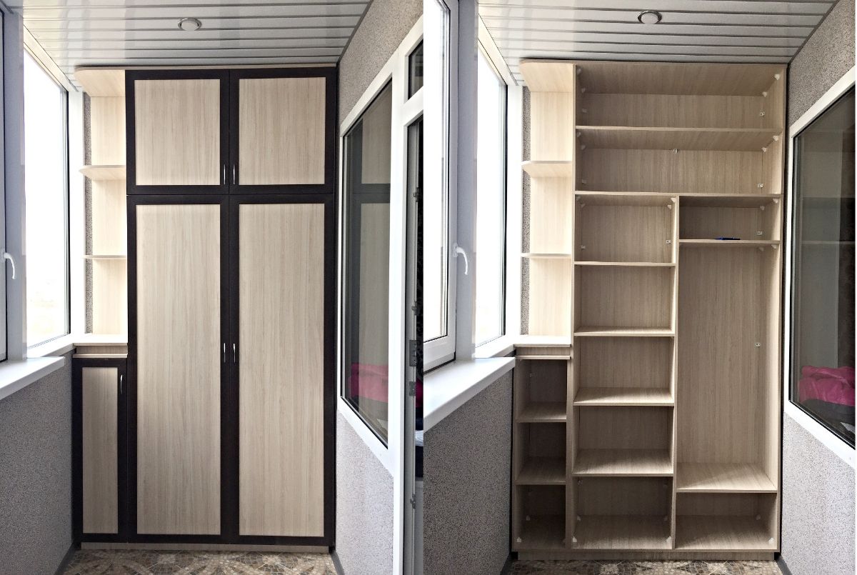 Его можно делать в том случае, если форма балкона у вас с углом и иначе разместить шкаф не выходит никак.