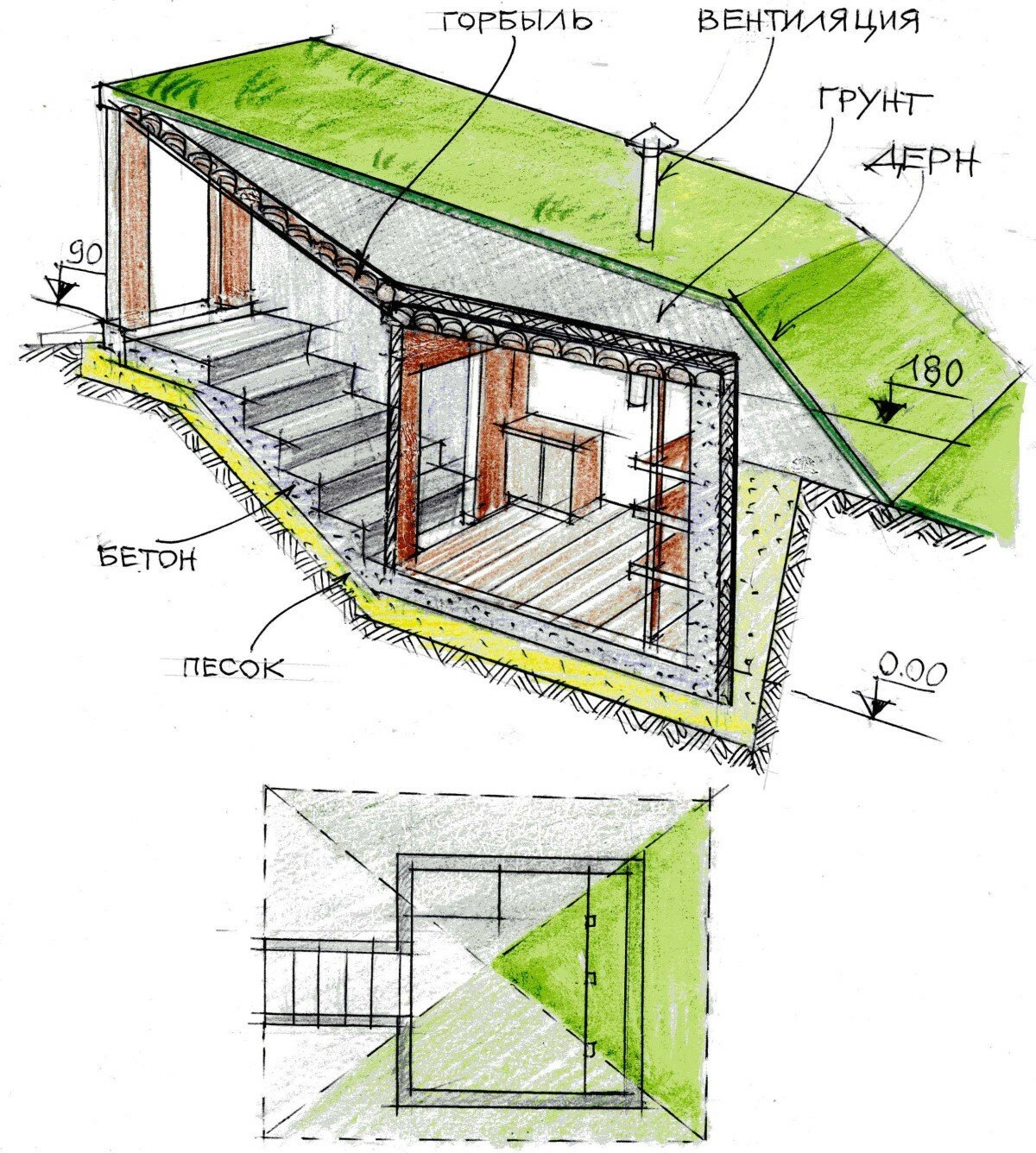 Мы рассмотрим вариант строительства отдельно стоящего погреба.
